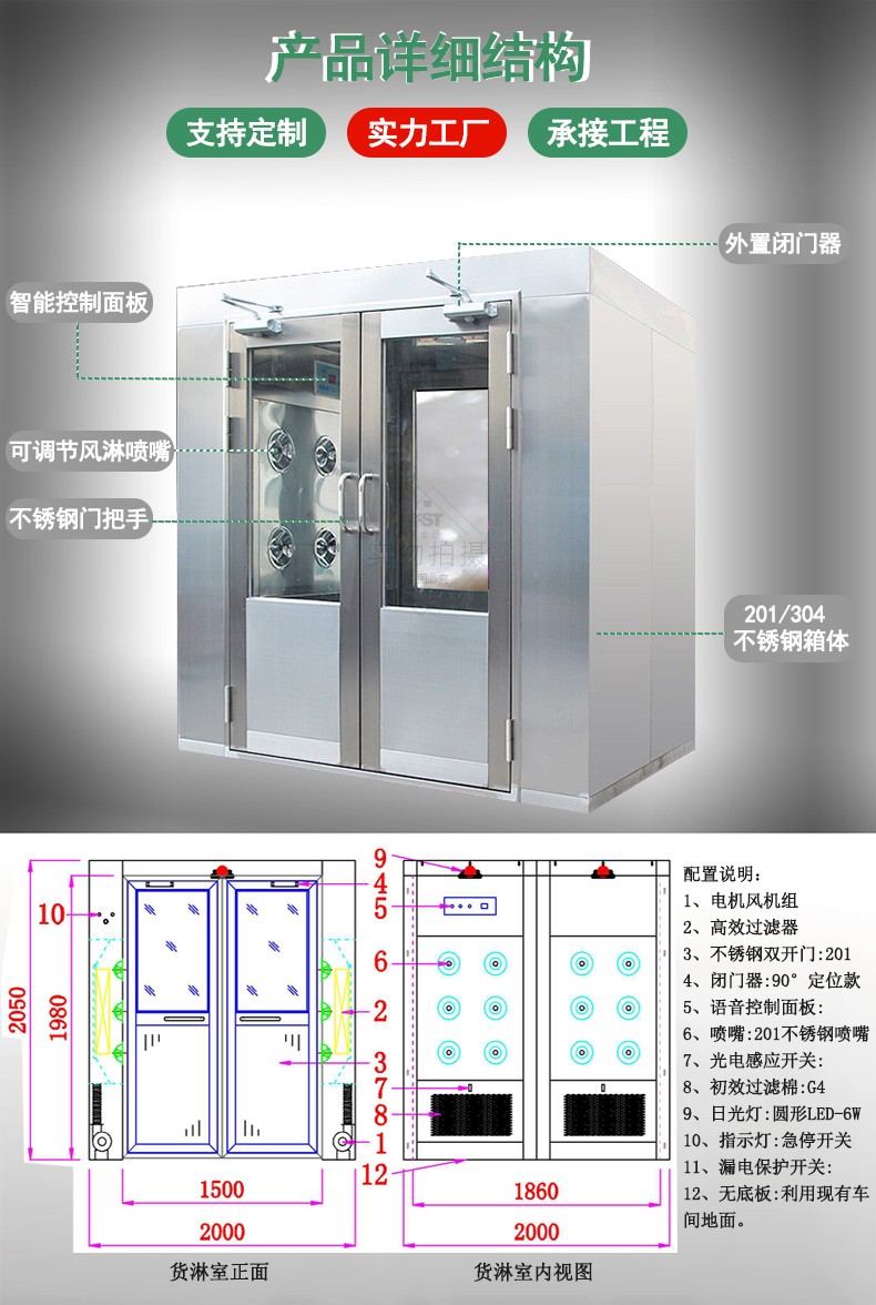 風(fēng)淋區(qū)尺寸:1500*1860*1980